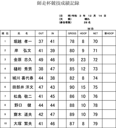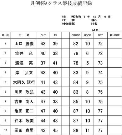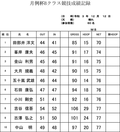 12月の競技成績表
