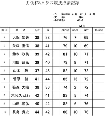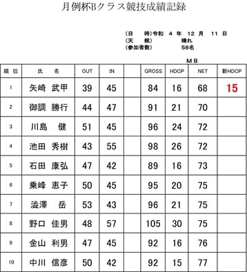 ★月例杯Bクラス