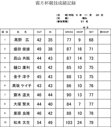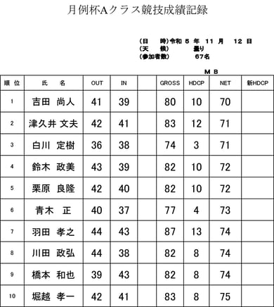 11月の競技成績表