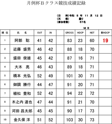 ★月例杯Bクラス