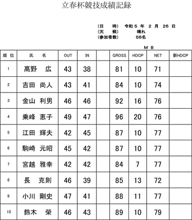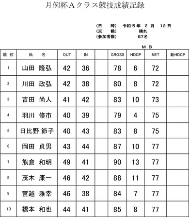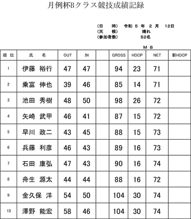 ★月例杯Bクラス