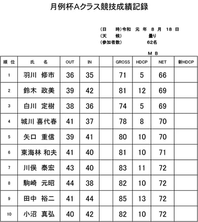 ★月例杯Aクラス★